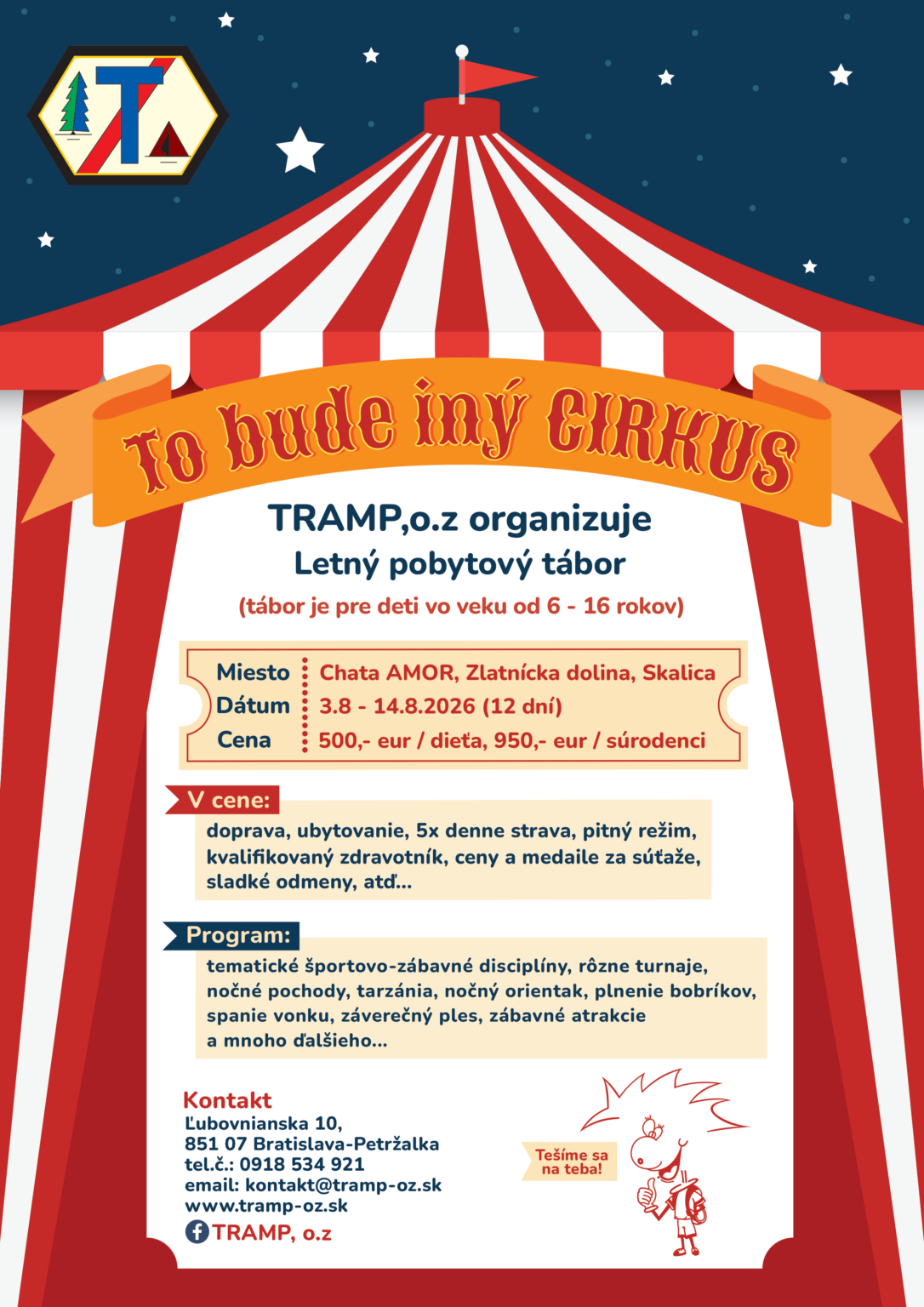Snažíme sa deťom sprostredkovať naše pocity, keď sme ešte my boli malí a trávili čas na tábore, kde sme mohli plniť bobríkov, riešiť úlohy v Morseovej abecede, spievať piesne pri táboráku, vytvárali sme si medzi sebou nové priateľstvá. Združenie TRAMP nemá za primárny cieľ zisk, ale dostať deti od počítača a ukázať im ako sa baviť vonku!